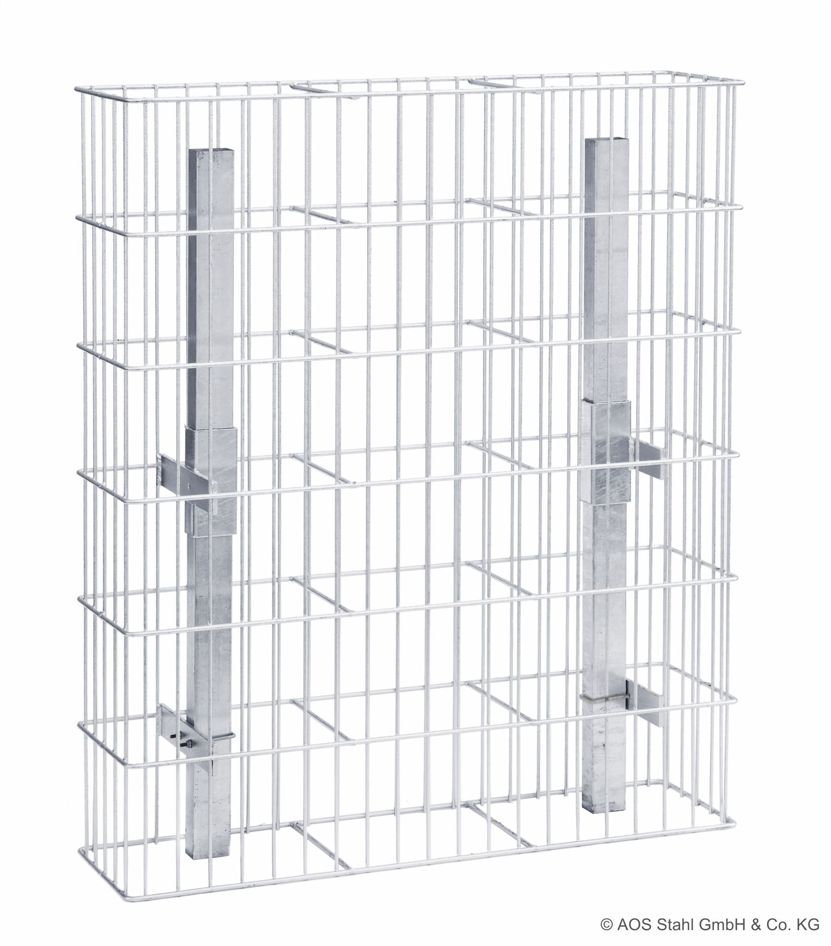 Durch Einfachstäbe von einer Drahtstärke 8/6 mm und einer Maschung von 50 x 200 mm können schnell und einfach große Steinwände realisiert werden. Die mitgelieferten Distanzhalter sind bereits angeschweißt. Diese sorgen für ein besseres Befüllen und mehr Stabilität. Der Korb wird vollständig geschweißt geliefert.Im Lieferumfang sind zwei Pfosten enthalten. Je nach Wunsch können die Gabionen einbetoniert oder zur Dübelmontage ausgeführt werden. Die Montage geht durch die Hülsen und das mitgelieferte Zubehör sehr schnell und einfach von der Hand. Erhältlich ist das Modell JUMBO in feuerverzinkt